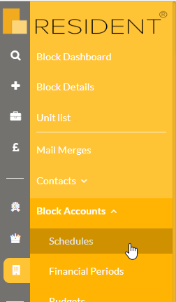 Once you have imported your sheet you will find the schedules in ‘Block’ > ‘Block Accounts’ > ‘Schedules’.