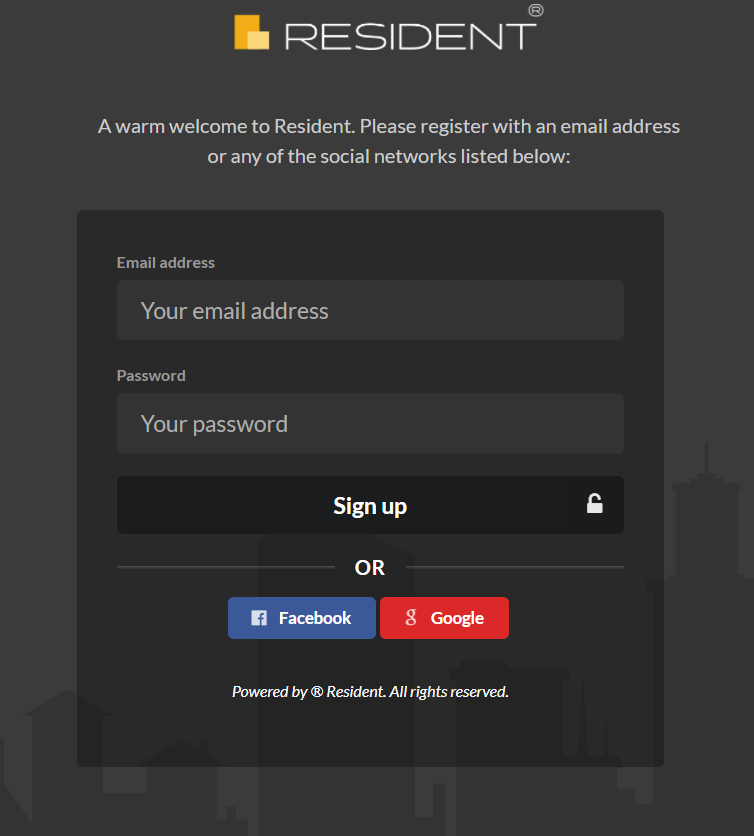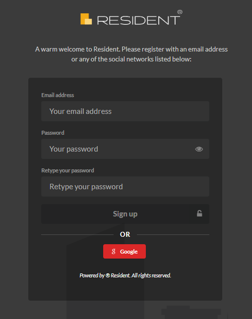 Tip: To get the most out of Resident and get the optimal experience we recommend that you use Google Chrome browser. It will work on any browser but you will get the best results in terms of performance and outlook by using Chrome. This browser is available for free from https://www.google.com/chrome/.
