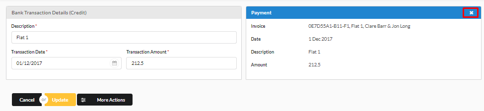 Here we can un-reconcile this by clicking the cross icon on the top right and updating.